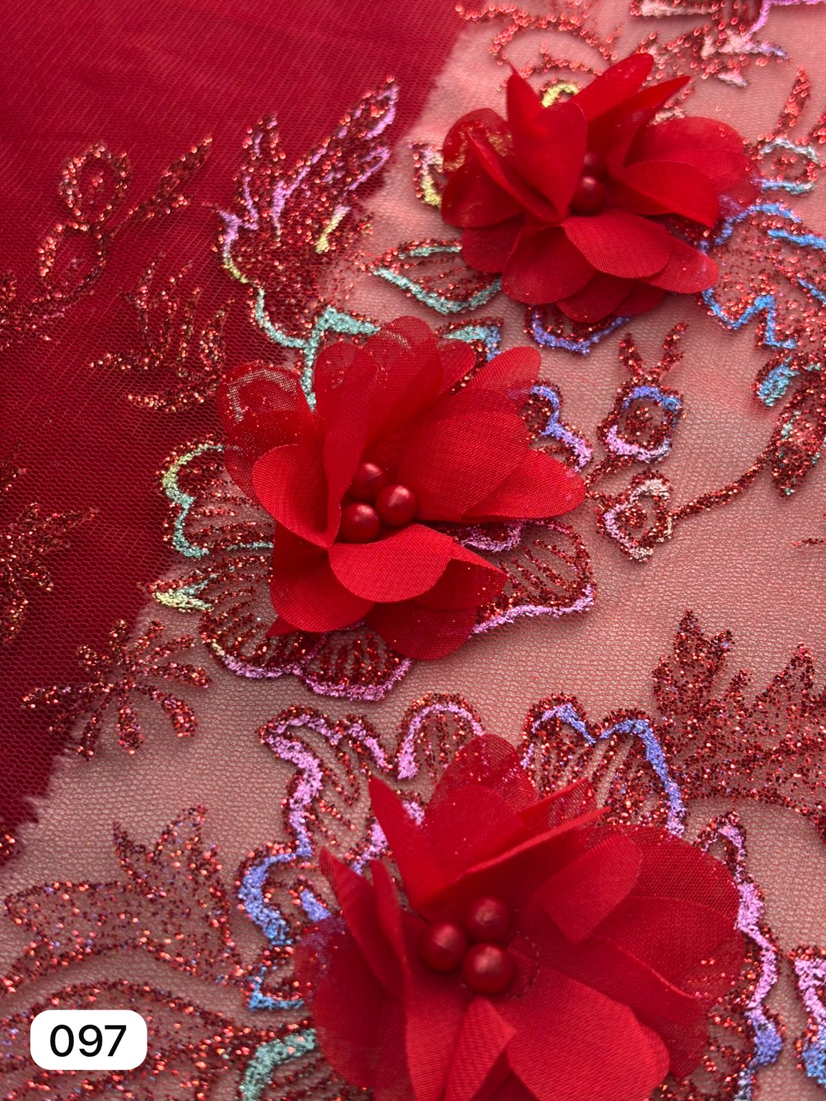 TUL BORDADO ROJO 00A977